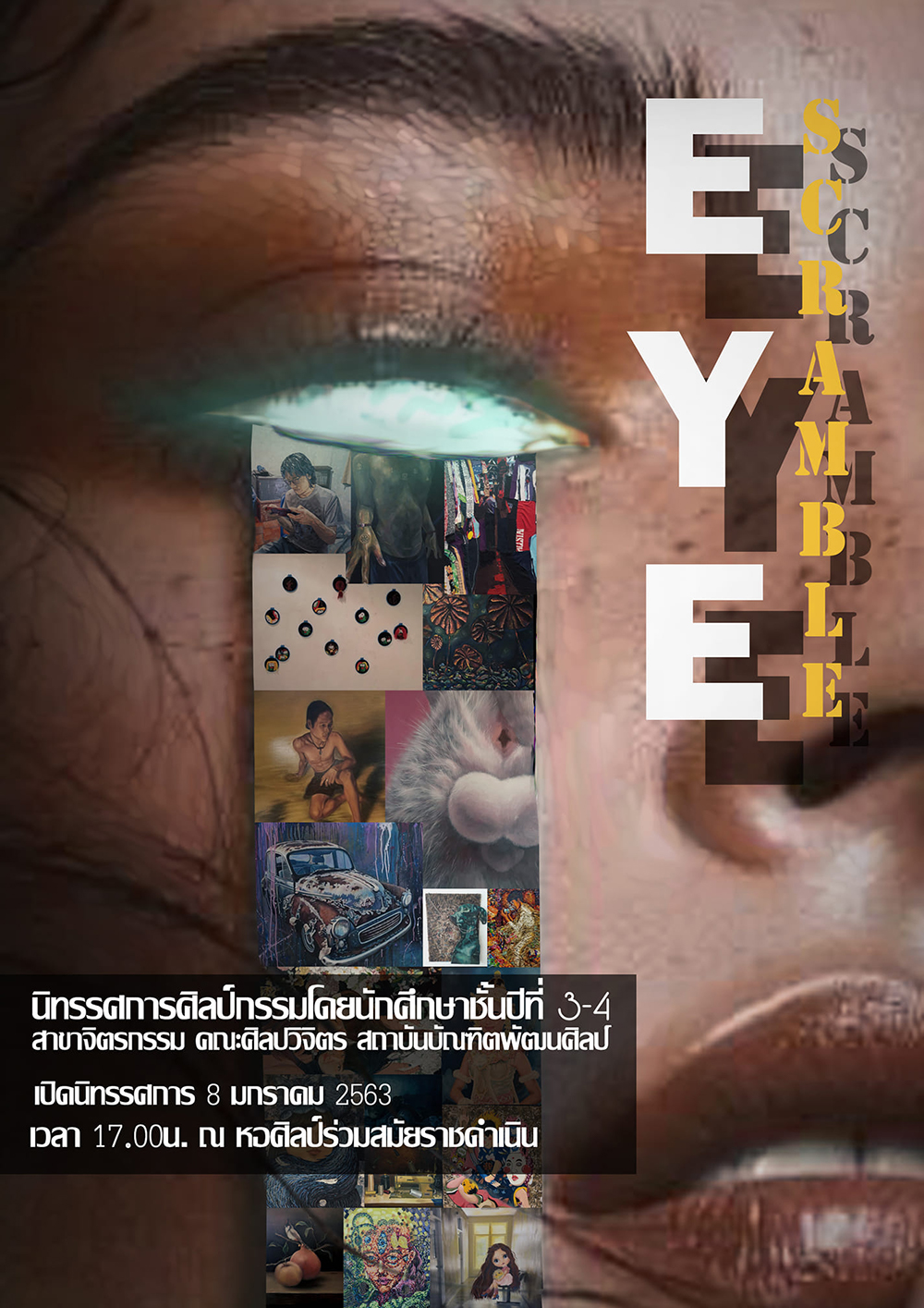ไปชมผลงานของศิลปินรุ่นใหม่กัน! ในนิทรรศการ Eye Scramble 2021 ครั้งที่ 2 ซึ่งเป็นการจัดแสดงงานศิลปะที่เป็นผลงานของนักศึกษาปีที่ 3 และ 4 สาขาจิตรกรรม คณะศิลปวิจิตร สถาบันบัณฑิตพัฒนศิลป์ ใส่แมสก์ ล้างมือ แล้วไปลุยงานศิลป์ของศิษย์สถาบันศิลปะย่านปากคลองตลาดแห่งนี้กันเลยจ้า!