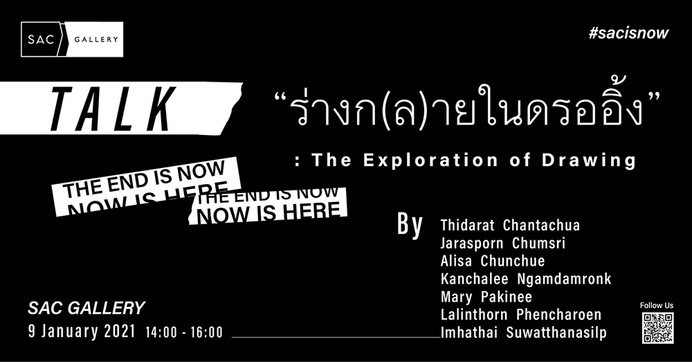 อยู่บ้านก็เสพศิลป์อย่างมีสไตล์ได้ เปิดคอมฯ แล้วไปร่วมวงเสวนา ร่างก(ล)ายในดรออิ้ง ที่นำศิลปินไทยรุ่นใหม่จากนิทรรศการ The End Is Now, Now Is Here ที่นำเสนอผลงานที่ถ่ายทอดความเกี่ยวโยงระหว่างสภาวะทางร่างกายและจิตใจ มานั่งพูดคุยถึงแนวคิดและการทำงานร่วมกัน เมื่อการทำงานศิลปะได้กลายเป็นส่วนคู่ขนานของชีวิต การทำงานวาดเส้นได้ถูกตีความอย่างน่าสนใจผ่านวิธีคิดที่หลากหลายจากศิลปินหญิง กิจกรรมเสวนาครั้งนี้จึงได้เกิดขึ้น เพื่อนำไปสู่การแลกเปลี่ยนความคิดทั้งในด้านเทคนิคและเนื้อหาในการแสดงออกของศิลปิน โดยหลังจบการเสวนายังสามารถพูดคุยกับศิลปินได้ด้วย