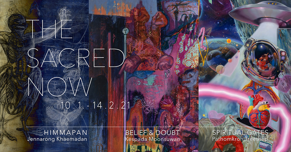 นิทรรศการที่ตั้งคำถามถึงความเชื่อ ความศักดิ์สิทธิ์ และโลกหลังความตาย ที่หลงเหลือในโลกปัจจุบัน ผ่านมุมมอง และการตีความที่ต่างกันของ 3 ศิลปิน ที่เป็นตัวแทนของคนรุ่นใหม่ ประตูผี โดย ปฐมกร ตรีเทพ, หิมพานต์ โดย เจนณรงค์ แคะมะดัน และ ความเชื่อ โดย เกศภาดา มูลสุวรรณ