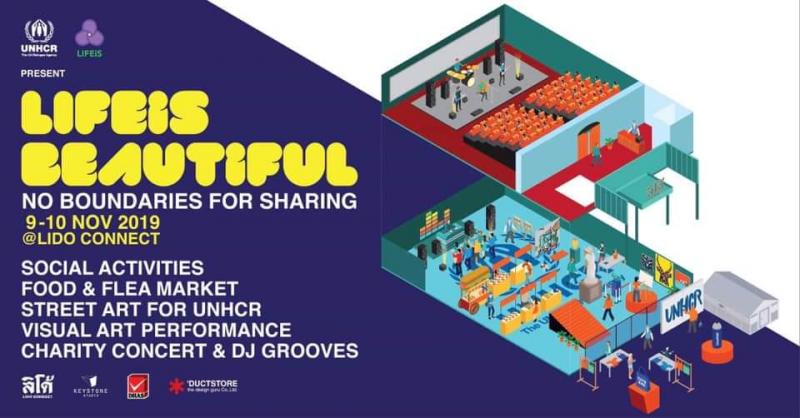 งานคอนเสิร์ตการกุศลเพื่อระดมทุนช่วยเหลือวิกฤตผู้ลี้ภัยโลกในปัจจุบัน ซึ่งจะจัดขึ้นที่ครีเอทีฟสเปซใจกลางกรุง Lido Connect โดยเป็นงานคอนเสิร์ตจากศิลปินชื่อดัง นภ พรชำนิ พร้อมแขกรับเชิญอย่าง YKPB, 2 Days Ago Kids P.O.P - Period Of P.O.P และ Triumphs Kingdom และเสริมความมันด้วย DJ set อีกทั้งยังมี Flea Market และงานศิลปะให้เดินชมเพลิน ๆ จาก Kor.Bor.Vor:The Labour Party Of Visual Creation และ NEV3R เราสามารถสมทบทุนด้วยการซื้อบัตรคอนเสิร์ตและซื้อกระเป๋า LIFEiS BEAUTiFUL คอลเลกชันพิเศษ โดยเขาจะนำรายได้ไปจัดซื้อชุดเครื่องเขียนให้กับเด็ก ๆ ผู้ลี้ภัยต่อไป