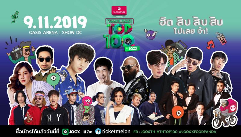foodpanda Presents Thailand Top 100 By JOOX 2019 บัตรราคา 1,100 บาท บัตรเซ็ต 4 ใบเหลือใบละ 1,000 บาท และ VIP 1,800 บาท ที่ Ticketmelon