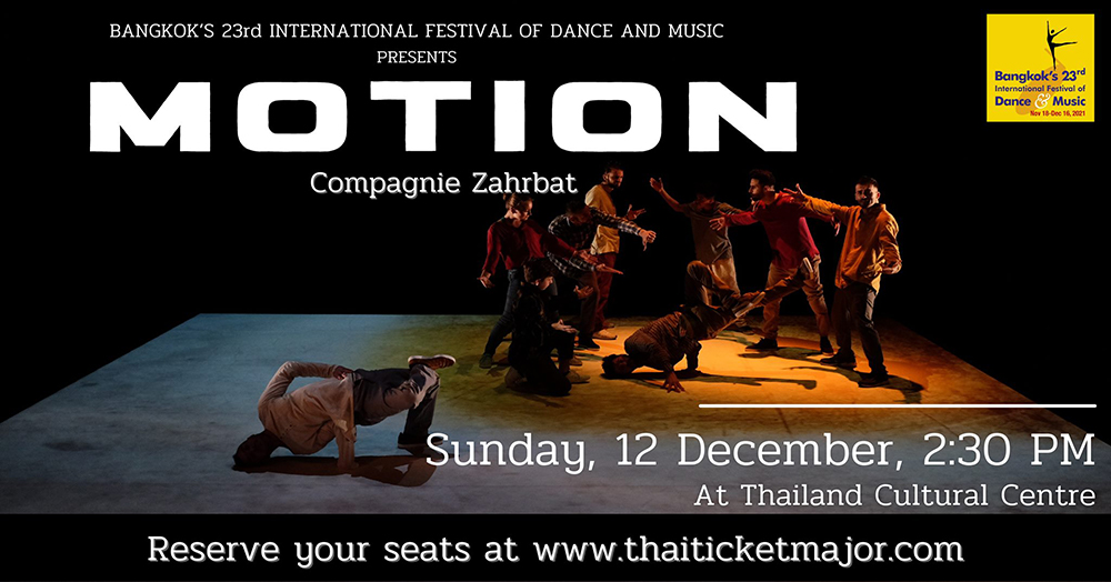 ใน MOTION ทุกชุดท่าเต้นเกิดจากการใช้หลักการของภาพยนตร์และการตัดต่อวิทยาการคอมพิวเตอร์ นักแสดงกายกรรม 9 คน จะพรั่งพรูออกมาแสดงให้เห็นถึงศิลปะในการเต้นเบรกแดนซ์ที่แท้จริง