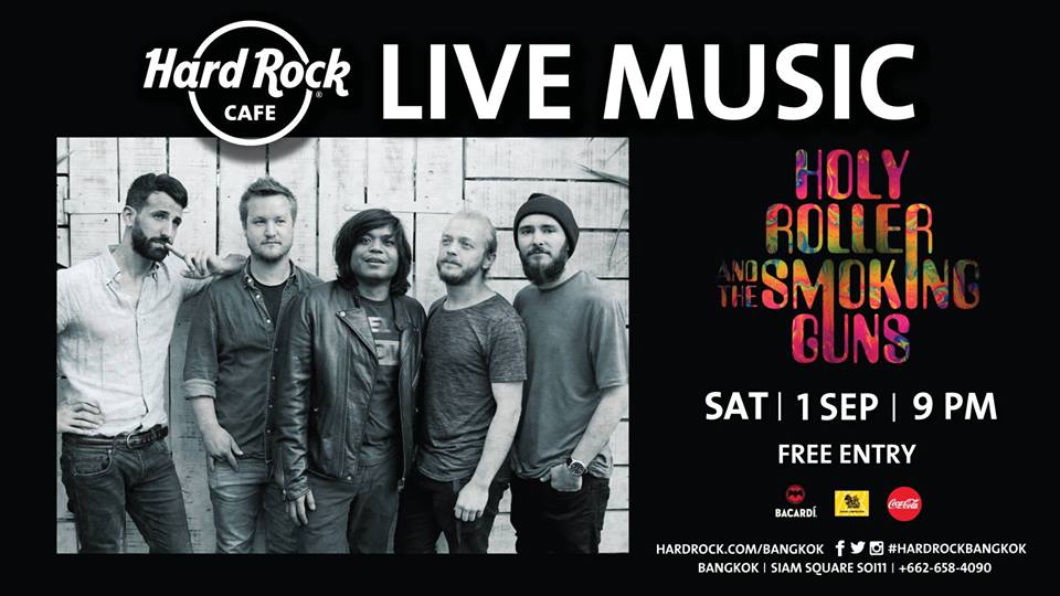 ขอเสียงชาวร็อคหน่อยเร็ว ! ฮาร์ดร้อคคาเฟ่ กรุงเทพฯ ขอชวนสายร็อกมาเปิดมิติแห่งความมันกับดนตรีสดที่ส่งตรงจากกรุงลอนดอน ในกลิ่นอายของเพลงร็อคยุค 60s และ 70s จากวง Holy Roller & The Smoking Guns ไปโชวืความเป็นร็อคในตัวเรากันเถอะ