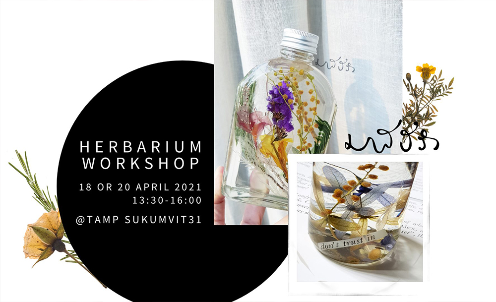เวิร์กชอปนี้เราจะได้ไปเรียนรู้และสนุกกับวิธีการถนอมและจัดดอกไม้แห้งในน้ำมัน เพื่อเก็บรักษาฟอร์มและสีดอกไม้ไว้ให้สวยจีรัง รู้จักความเป็นมาของ Herbarium อุปกรณ์ในการลงมือทำ เทคนิคการเลือกและการอบดอกไม้ ตลอดจนเทคนิคการจัดดอกไม้ในขวด จบคลาสนี้เราก็จะได้ผลงาน Herbarium 3 ขวด ที่ทำด้วยฝีมือตัวเองขนาด M, S และ XS กลับบ้านกันด้วย