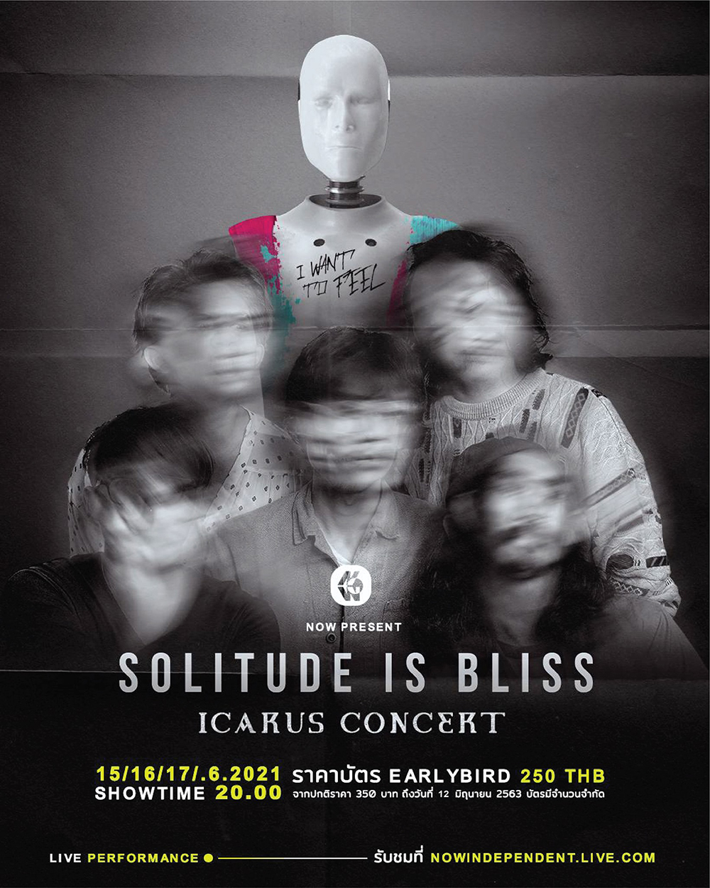 Solitude is Bliss: Icarus Concert จะเกิดขึ้นในที่ 15 - 17 มิ.ย. นี้ เวลา 20:00 น. ความยาว 1 ชม.เต็ม ใครที่คิดถึงพวกเขาก็สามารถไปจับจองบัตรกันได้ผ่าน Inbox ของเพจ NOW Independent Music บัตร Early Bird ราคา 250 บาท จนถึงวันที่ 10 มิ.ย. จากนั้นจะเป็นบัตรปกติราคา 350 บาท ใครคิดถึงคอนเสิร์ตวงอินดี้ไทยแบบเราก็ไปจัดกัน!