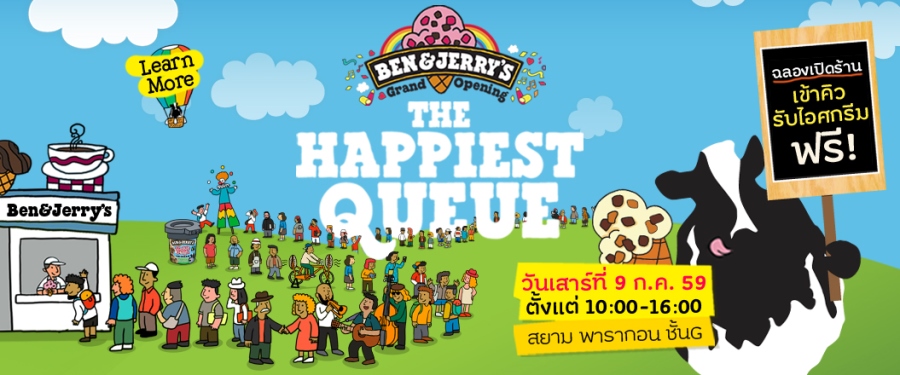 มหกรรมการเข้าคิวที่มีความสุขที่สุด จัดขึ้นวันเสาร์ที่ 9 กรกฎาคม พ.ศ. 2559 เริ่มตั้งแต่เวลา 10:00 - 16:00 น. ณ ร้านไอศกรีม Ben & Jerry’s ชั้น G ห้างสรรพสินค้าสยามพารากอน