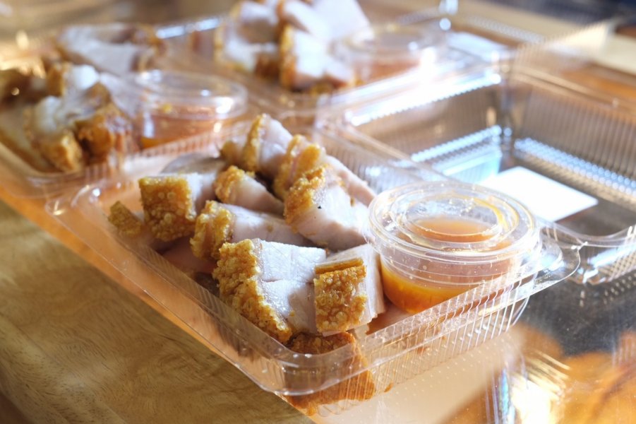 ประเดิมร้านแรกด้วยเมนูหมูกรอบสูตรต้นตำรับจากฮ่องกงที่อยู่มานานกว่า 20 ปีแล้ว หมูกรอบที่นี่ได้รับการกล่าวขานมาอย่างยาวนาน ด้วยวัตถุดิบที่คัดสรรอย่างดี และประสบการณ์การขายกว่า 20 ปี ทำให้รสชาติของหมูกรอบที่มีเป็นเอกลักษณ์เฉพาะ มีหนังที่กรุบกรอบน่ารับประทาน นอกจากออกบูธตามงานต่างๆ แล้วที่นี่เขายังมีบริการส่งถึงที่ด้วยนะ