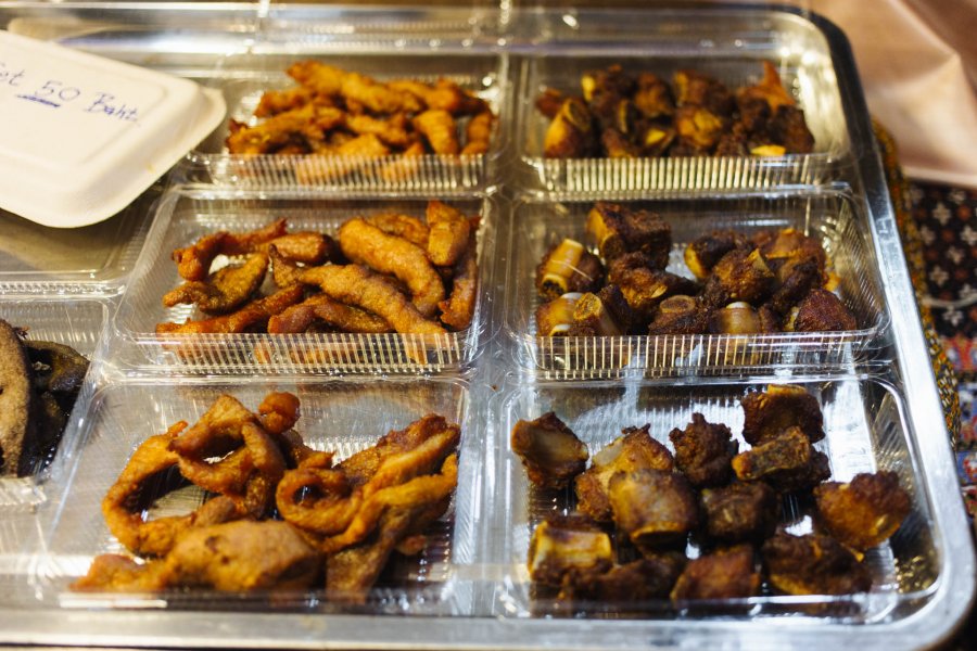 หลากหลายเมนูหมูทอด ที่นอกจากหมูทอดแล้วยังมีทั้งหมูหวาน หมูฝอย ตับทอด ซี่โครงหมูทอด เนื้อทอด เนื้อฝอย ข้าวเหนียวขาว ข้าวเหนียวดำ ให้เราอิ่มกันได้ในงบไม่เกิน 100 บาท สิ่งที่เค้าบอกกันว่าเป็นทีเด็ดของร้านก็คือ “ข้าวเหนียวมหัศจรรย์” ที่ใครชิมก็ต้องบอกว่า มันนุ่มมาก ไม่ลองไม่ได้แล้ว