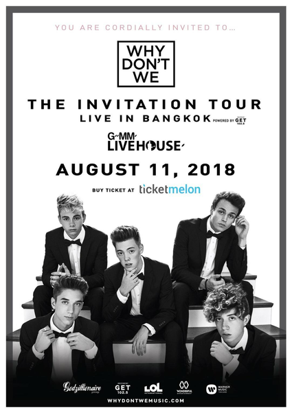 11 ส.ค. WHY DON'T WE : INVITATION TOUR LIVE IN BANGKOK 2018