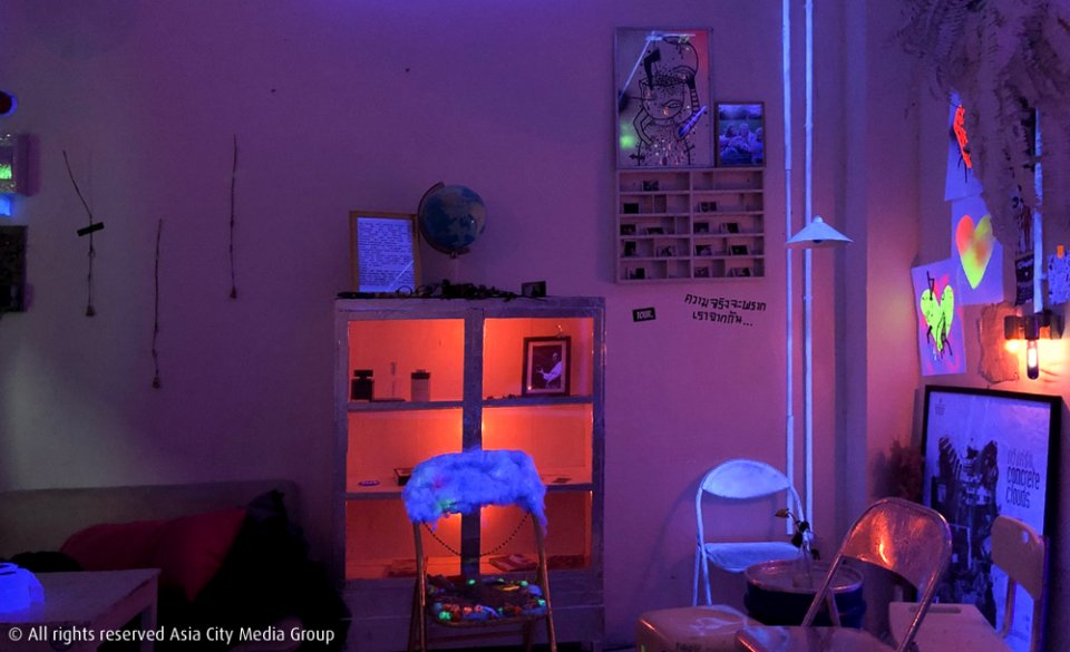 ธีมหลัก ๆ ก็ตามชื่อร้านที่เต็มไปด้วยจริตความเป็น Sci-Fi ตั้งแต่การเคลือบทุกอย่างที่ชั้นล่างให้เป็นสีขาวโพลนเพราะตั้งใจให้เหมือนอยู่บนยานอวกาศที่มีความแห้งแล้ง ๆ แล้วสาดด้วยไฟแบล็คไลท์ เคาน์เตอร์บาร์เล็ก ๆ (ที่ไม่น่าเชื่อว่าพนักงานร้าน 4 คนจะยืนอัดอยู่ในนั้นได้) ถูกก่อขึ้นมาด้วยมือของพี่รันเอง ประดับด้วยของเล่นพลาสติกที่ไม่รู้ว่ามาได้ยังไง แต่มองไปมองมาก็ดูเข้ากันได้ดีไปมู้ดของชั้นล่าง