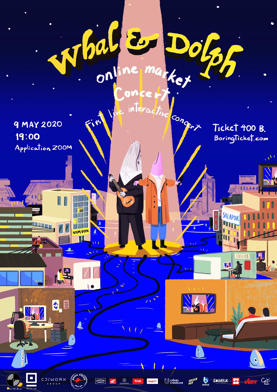 สำหรับการกลับมาเปิดตลาดปลาครั้งนี้ก็มาในรูปแบบพิเศษ เพราะ 2 พ่อค้าจะส่งตรงความสุขแบบสด ๆ ถึงบ้านเราในรูปแบบของ Interactive Online Concert ที่ไม่เคยเกิดขึ้นมาก่อนในบ้านเรา โดยผู้ชมทั้ง 1,000 คน จะได้รับชมการแสดงสดของ Whal & Dolph พร้อม ๆ กัน และนอกจากจะได้โต้ตอบกับศิลปินแบบเดียวกับในคอนฯ จริง ๆ แล้ว ผู้ชมก็ยังร่วมแชร์โมเมนต์ ณ ขณะนั้นด้วยกันได้ เพราะเราจะได้เห็นหน้าทุกคนจากจอ ใครที่ไม่เคยมีประสบการณ์ตกหลุมรักในคอนเสิร์ต ก็ระวังจะมาทำหัวใจตกที่หน้าจอในคอนฯ นี้ซะล่ะ!