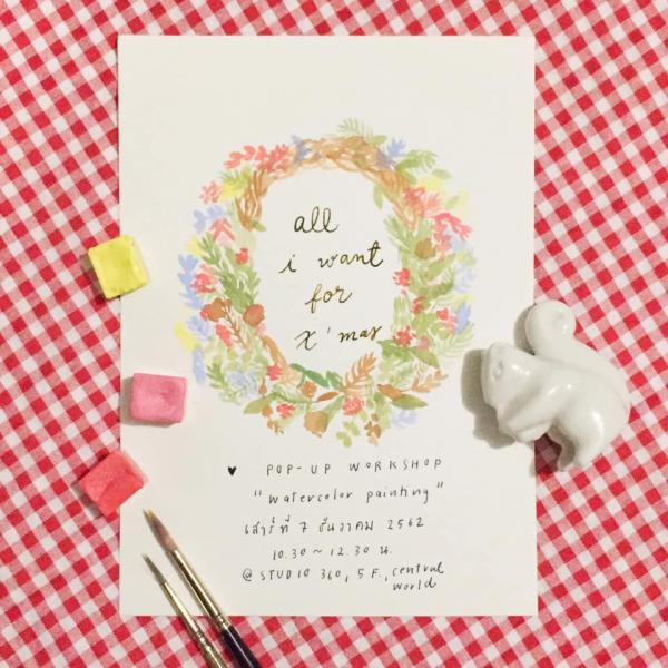 แว้บกันมาที่ชั้น 5 Central World เพราะวันเสาร์นี้ Studio 360 ร้านขายเครื่องเขียนเกรดนำเข้าเขาก็เตรียมกิจกรรมไว้ให้เรา โดยเชิญ Jenny Bonbon นักทำสีน้ำสไตล์แฮนเมดมาจัดป๊อปอัปเวิร์กชอปเทคนิคการวาดสีน้ำในรูปพวงดอกไม้คริสต์มาส เราจะได้เรียนกันตั้งแต่ขั้นเบสิกอย่างการวาดสีน้ำเบื้องต้น ไปจนถึงการวาดดอกไม้และใบไม้ งานนี้จ่ายแค่ 900 บาท จะได้ทั้งสีน้ำ พู่กัน กระดาษ ปากกา และเทคนิคกลับไปวาดกันต่อที่บ้าน