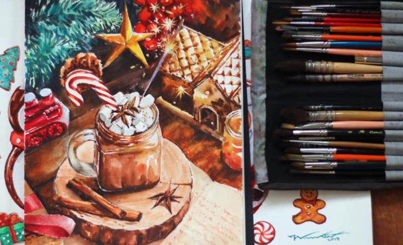 วาดภาพสีน้ำน่ารักในธีม Christmas Gift