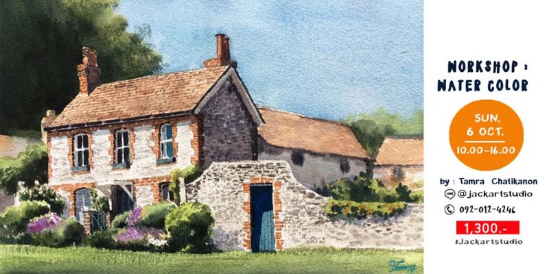 ชาวกรุงเทพฯ อย่างเรา ๆ คงจะมีช่วงเวลาที่เบื่อฝนตก เบื่อรถติด เบื่อความแออัดในเมืองหลวง และหวนคิดถึงการออกไปใช้ชีวิตต่างจังหวัด ในบ้านแสนอบอุ่นที่มีพื้นหลังเป็นบรรยากาศแสนร่มรื่นและรายล้อมไปด้วยสิ่งของที่เราชื่นชอบ ซึ่งเวิร์กชอปนี้ก็จะพาเรามาวาดภาพในฝันเหล่านั้นลงบนกระดาษสีขาวด้วยเทคนิคสีน้ำ โดยจะเรียนรู้กันตั้งแต่พื้นฐานการใช้สีน้ำ การเขียนภาพทัศนียภาพเบื้องต้น การลงรายละเอียดของอิฐ การลงสีบรรยากาศภายนอกตัวบ้านไม่ว่าจะเป็น ดอกไม้ ต้นไม้ ต่าง ๆ และที่ขาดไม่ได้เลยการสร้างมิติแสงเงาให้กับภาพ