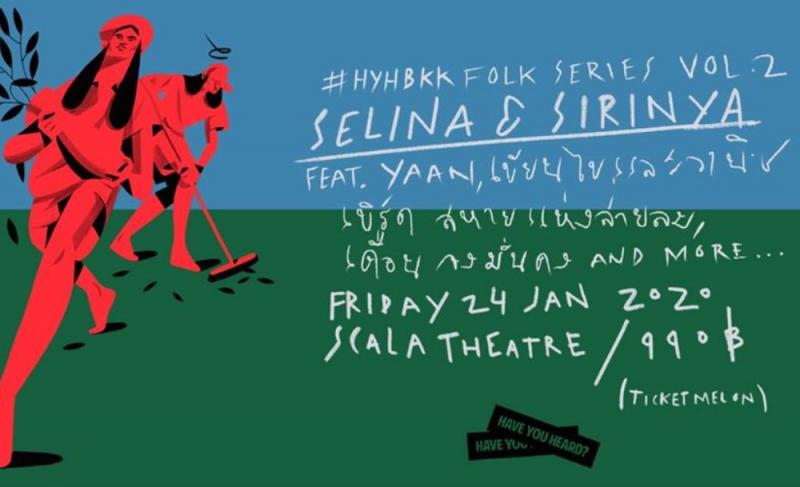 ปลายเดือนนี้ สายโฟล์กและเหล่ามนุษย์สโลว์ไลฟ์เรามีนัดกันที่โรงหนังสกาลา แต่เราไม่ได้จะรวมตัวกันเพื่อดูหนังหรอกนะ เพราะเราจะไปฟังซึมซับดนตรีโฟล์กไทยกันใน HAVE YOU HEARD? Folk Series Vol. 2 - Selina & Sirinya คอนเสิร์ตดนตรีโฟล์กไทยของผู้จัด HAVE YOU HEARD? ที่คราวนี้ได้เจ้าของเพลงโฟล์กไทยต้นตำรับอย่าง Selina & Sirinya มาเป็นเฮดไลเนอร์ ในงานนี้นอกจากจะได้ฟังเพลงอมตะของสองคู่หูดูโอ้อย่าง อยู่ตรงนี้แต่แสนไกล, Our และ Still Together แล้ว คนในงานจะได้ฟังอีพีใหม่ล่าสุดอย่าง รอยยิ้ม...คนรัก ด้วย พร้อมด้วยเหล่าเพื่อนฝูงของ Selina & Sirinya ที่จะมาช่วยพาเราล่องลอยไปยังพื้นที่แสนไกล ไม่ว่าจะเป็น สหายแห่งสายลม, Deun เดือน และ YAAN ญาณ
