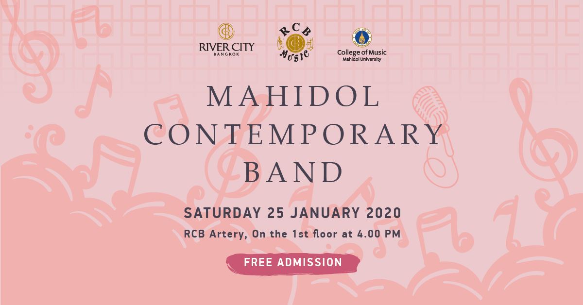 ตรุษจีนปีนี้ไปไหนดีนะ! เราอยากชวนทุกคนจูงมืออาม่าอากงมาฟังดนตรีที่ River City เพราะวันเสาร์นี้เขามีวงดนตรี Mahidol Contemporary Band จากวิทยาลัยดุริยางคศิลป์ มหาวิทยาลัยมหิดลมาบรรเลงเพลงด้วย กู่เจิง (พิณจีน), เอ้อหู (ซอจีน), เปียโน, ขิม (เครื่องสาย) และเครื่องประกอบจังหวะ ซึ่งจะเป็นบทเพลงผสมผสานวัฒนธรรมระหว่างไทยและจีน ให้เราได้ขับร้องไปด้วยกันในเทศกาลแสนอบอุ่นนี้