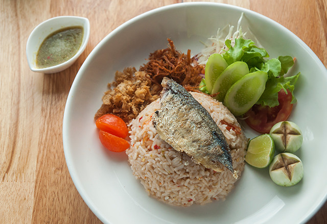 เราอยากแนะนำให้ลอง น้ำพริกลงเรือปลาทูน่าฟู (240 บาท) และแกงเผ็ดเป็ดย่าง (120 บาท) สำหรับของหวานก็มีโทสต์หลายท็อปปิ้ง (เริ่มต้นที่ 170 บาท) ช็อกโกแลตฟองดู (120 บาท) แต่ไฮไลท์คงต้องยกให้เมอร์แรงมะม่วง (120บาท) พอพลบค่ำแล้วคาเฟ่ไม้สไตล์โรงนาน่ารักๆ แห่งนี้ก็จะกลายเป็นบาร์ดนตรีโฟล์ค มีการแสดงสดทุกวันธรรมดาระหว่าง 21:00-23:00น.