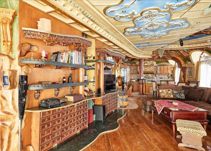 Airbnb ให้สมญานามที่พักนี้ว่าเป็น ถ้ำของอาลีบาบา เพราะภายในถูกตกแต่งแบบอลังการงานสร้าง สีทองอร่ามไปทุกอณู ที่พักในสโกเปียแห่งนี้ได้รับแรงบันดาลใจมาจาก Salvador Dalí จิตรกรชาวสเปนที่มีชื่อเสียงจากภาพวาดแนวเหนือจริง (surrealism)