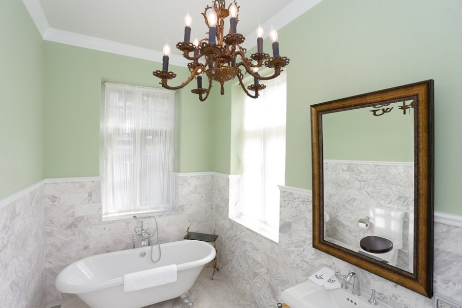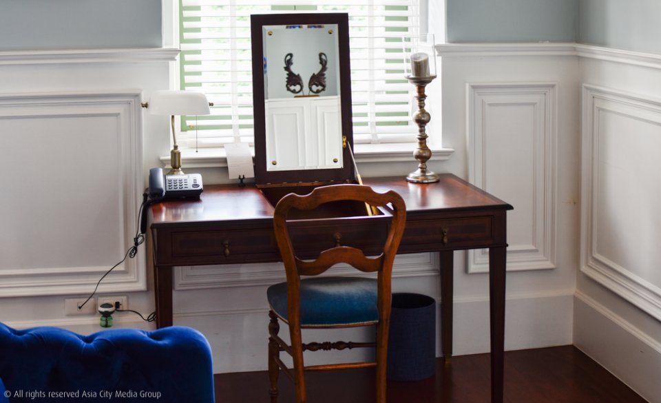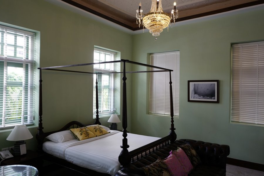 ในส่วนของเฟอร์นิเจอร์ทุกอย่างก็หรูหราจัดเต็มแบบมี 100 ดาวก็อยากให้เต็ม 100 ตั้งแต่ห้องน้ำ (ที่ใหญ่กว่าห้องนอนที่บ้าน) กับอ่างอาบน้ำสไตล์คลาสสิกที่ใครมาพักแล้วไม่ยอมแช่น้ำคือใจหินมาก ที่พิเศษคือเพดานเขียนปูนแบบโบราณที่ด้านบน ซึ่งเป็นเพดานเดิมอายุกว่าร้อยปีของอาคารแห่งนี้ที่ทางโรงแรมอนุรักษ์ไว้นั่นเอง