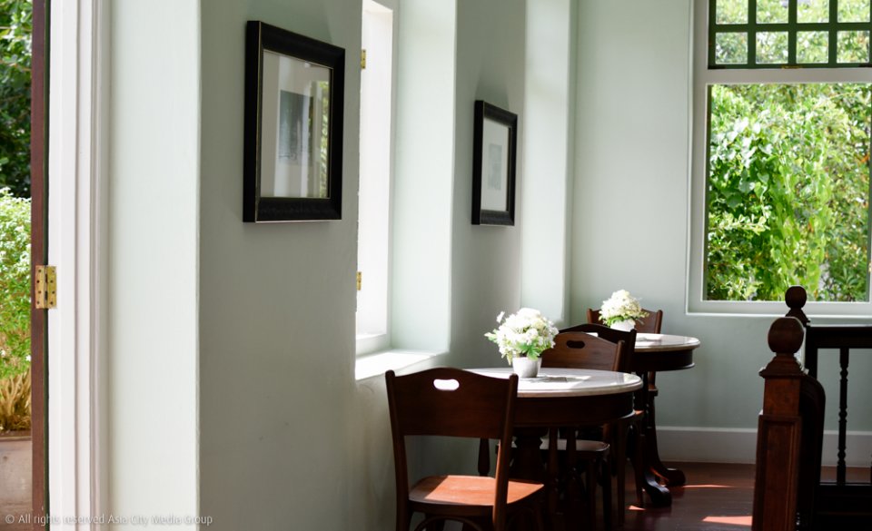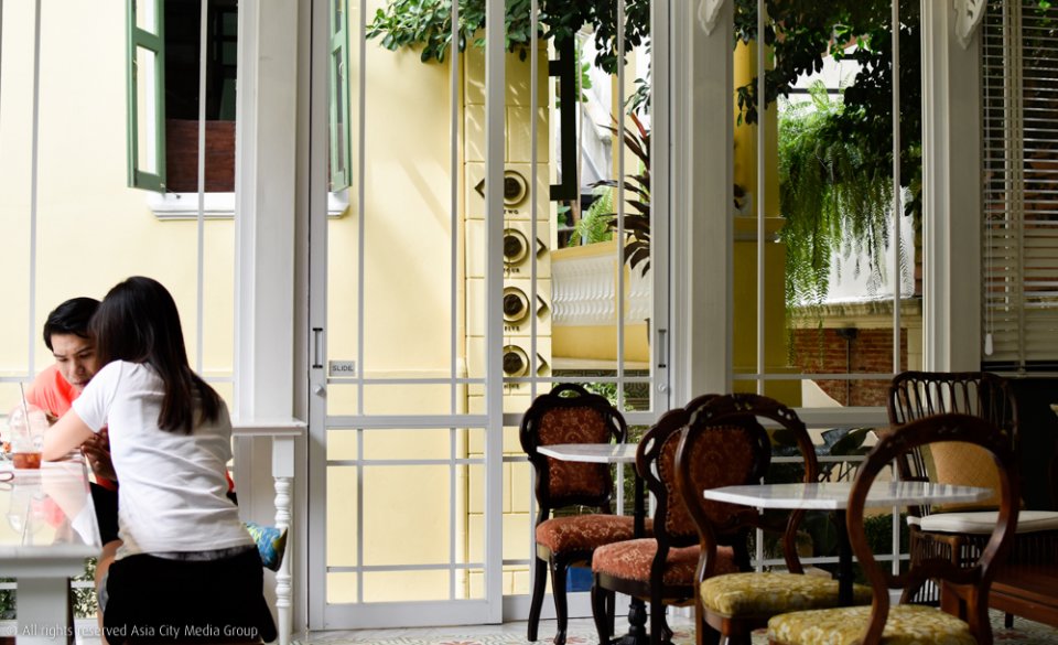 ด้วยความที่อยากเก็บภาพในอดีตเอาไว้ให้มากที่สุด เราเลยจะได้เห็นประตู หน้าต่าง เพดานเขียนปูน ไปจนถึงพื้นบันไดไม้ของอาหารหลังนี้ถูกนำมาใช้ใหม่อีกครั้ง จนสัมผัสได้ถึงความขลังและมนต์เสน่ห์กว่าร้อยปีที่หลงเหลือเป็นควันเบาบางอยู่รอบ ๆ ตึก