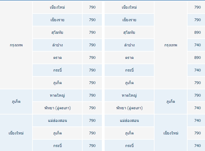 สำหรับแคมแปญ "มากกว่าคำขอบคุณ" บินเบาๆ ราคาพิเศษ ทุกเส้นทางในประเทศจะเริ่มต้นที่ราคา 690 บาท/เที่ยว โดยราคาสุทธิที่รวมภาษีสนามบินจะเริ่มต้นที่ 790 บาท ไม่ว่าจะเป็น เชียงใหม่ ตราด กระบี่ หาดใหญ่ หรือภูเก็ต