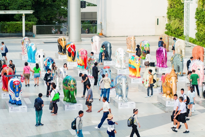 งาน Elephant Parade คือการนำประติมากรรมรูปช้างที่ทำจากเรซิน ซึ่งได้รับการออกแบบลวดลายโดยศิลปินรับเชิญจากทั่วโลก ซึ่งล้วนแต่เป็นคนดังในแวดวงต่างๆ ไม่ว่าจะเป็นวงการศิลปะ วงการบันเทิง นักธุรกิจคนดัง ไปจนถึงเชื้อพระวงศ์ในราชวงศ์ยุโรป