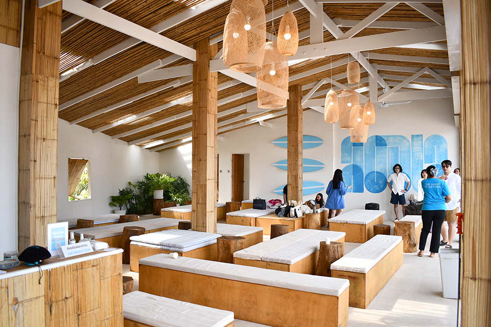 ใครที่จองมาใช้บริการของ LongLay Local Tour น่าจะแฮ๊ปปี้กันตั้งแต่มาถึงท่าเรือ เพราะเราจะได้พบกับล็อบบี้สีฟ้า-ขาวตกแต่งด้วยฟาซาดไม้ไผ่ มีข้าวเหนียวหมูฝอยโฮมเมดจากร้านในท้องถิ่นไว้ให้หยิบมาเติมพลังก่อนขึ้นเรือ ส่วนเหล่าทีมงานที่คัดสรรมาอย่างดี ก็มีทั้งครูสอนดำน้ำ นักอนุรักษ์ทะเลไทย และอาสาสมัครกู้ภัยทางน้ำที่จะคอยดูแลและให้ความรู้กับเหล่านักท่องเที่ยวอย่างเราแบบไม่น่าเบื่อ
