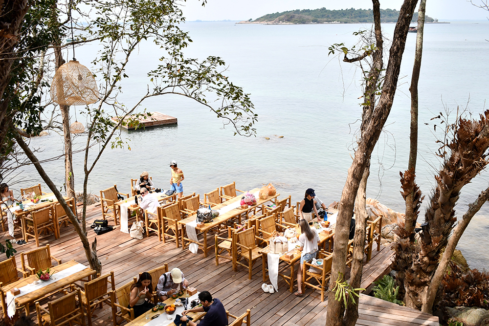 ปิดท้ายทริปของทัวร์สั้น ๆ แบบวันเดย์ทริปนี้ ด้วยไฮไลต์สุดปังที่ทัวร์อื่นทำไม่ได้อย่างแน่นอน เพราะเขาจะพาเราไปเยือน Longlay Beach Club บีชคลับส่วนตัวที่ใช้พื้นที่ในส่วนอันซีนที่สุดของเกาะมันกลางที่มีไฮไลต์เป็นวิวพระอาทิตย์ตกในช่วงเย็นเป็นจุดปักหมุด โดยบีชคลับสุดไพรเวทแห่งนี้ถูกแปลงโฉมมาจากบริเวณชายหาดรกร้างแต่เดิมของเกาะมันกลาง ชุบชีวิตใหม่ด้วยดีไซน์แสนเก๋ของพาวิลเลียนไม้ไผ่ที่ทำขึ้นเพื่อสร้างแชร์สเปซให้แก๊งเพื่อนได้มานั่งเล่นรวมตัวกันเมื่อแลนด์ดิ้งลงที่บีชคลับแห่งนี้ เชื่อมต่อกับโซนโต๊ะดินเนอร์พร้อมบูธดีเจที่ในช่วงเย็นจะเสิร์ฟดินเนอร์จากปลาไทยที่ตกโดยชาวประมงในพื้นที่ แจงลอนย่างหอม ๆ พร้อมด้วยเครื่องดื่มเย็น ๆ จากบาร์เทนเดอร์ชาวบ้าน ส่วนใครจะลากเก้าอี้มานอนอาบแดดริมหาด หรือกระโดดลงน้ำแล้วว่ายไปนอนเล่นบนแพกลางทะเลก็ได้เหมือนกัน
