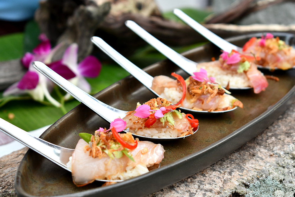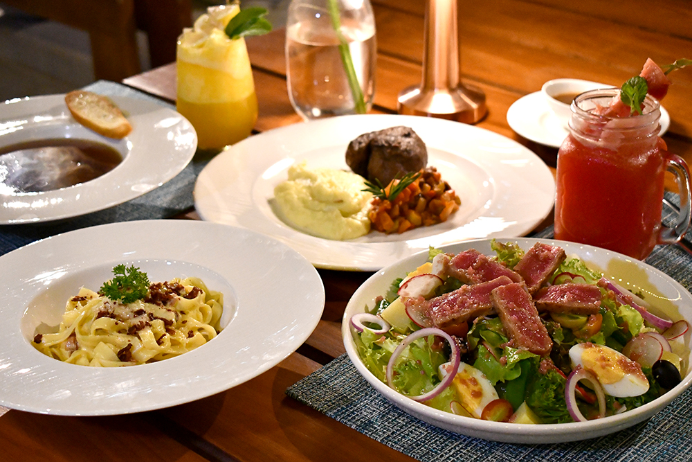 ที่ประทับใจที่สุดคือโซนส่วนกลางของโรงแรมที่เป็นห้องอาหารและสระว่ายน้ำ ซึ่งแขกทุกคนจะได้สัมผัสลมทะเลที่พัดมาทักทายตลอดวันตั้งแต่เช้าจรดเย็น สมชื่อคำโปรยของโรงแรมว่า Lomtalay ที่แท้ทรู บวกกับมื้ออาหารแจ่ม ๆ ตั้งแต่ไลน์อาหารเช้าไปจนถึงดินเนอร์หนัก ๆ ทั้งอาหารฝั่งตะวันตกและตะวันออก รวมถึงเมนูซิกเนเจอร์ประจำโรงแรมอย่างแกงปูระยองที่แสนขึ้นชื่อ ก็เป็นการเยียวยากระเพาะอาหารจากที่ขึ้นรถลงเรือมาทั้งวันได้เป็นอย่างดี!