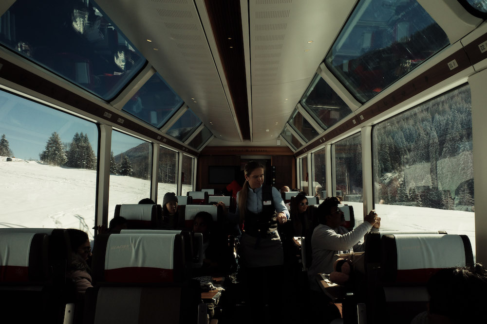 รถไฟสาย Glacier Express จะเริ่มต้นที่สถานี Zermatt แห่งรัฐวาเล และสิ้นสุดที่สถานี St. Moritz แห่งรัฐเกราบึนเดิน (Graubünden) และนั่งย้อนกลับในเส้นทางเดียวกันได้ โดยขบวนรถไฟจะเคลื่อนตัวผ่านขุนเขา ทุ่งหญ้า ลำธาร และหมู่บ้านต่างๆ อย่างช้าๆ โดยใช้เวลาทั้งสิ้น 8 ชั่วโมง (สามารถลงสถานีระหว่างทางได้) อีกหนึ่งจุดเด่นคือกระจกที่กว้างไปจนถึงเพดาน ทำให้เห็นวิวอลังการได้เต็มตาจากเบาะนั่งสุดสบาย ทั้งยังมีอาหารหลากเมนูให้พร้อมสรรพ ดังนั้น ถึงแม้อาจจะฟังดูใช้เวลาเดินทางนานเสียหน่อย แต่เมื่อมีทั้งวิวที่งามราวกับสวรรค์กับอาหารอร่อยๆ หรือเครื่องดื่มที่เราถูกใจ เวลามันก็ผ่านไปไวเหลือเกิน แต่สิบปากว่าก็ไม่เท่าตาเห็น ของแบบนี้ต้องมาลองด้วยตัวเองนะ!
