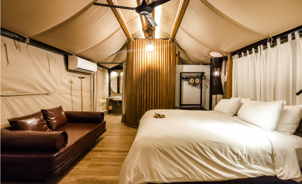 ต้องเริ่มกันที่รีสอร์ตเต็นท์ จุดเช็กอินที่หรูหรา แกลมเมอรัส แต่ยังจับต้องได้ ในโซนเขาใหญ่ จ.นครราชสีมา กับ Lala Mukha Tented Resort ที่เหมาะเหลือเกินกับการนอนเต็นท์ครั้งแรก เพราะมีให้ทุกอย่างครบ แถมสระว่ายน้ำและพื้นที่ทำบาร์บีคิวไปอีก เป็นการเข้าใกล้ธรรมชาติแบบยังไม่ละทิ้งความสะดวกสบายอย่างแท้จริง จะไปคู่ ไปเป็นทีม หรือไปทั้งครอบครัวก็ปลื้มปริ่มได้ทั้งนั้น