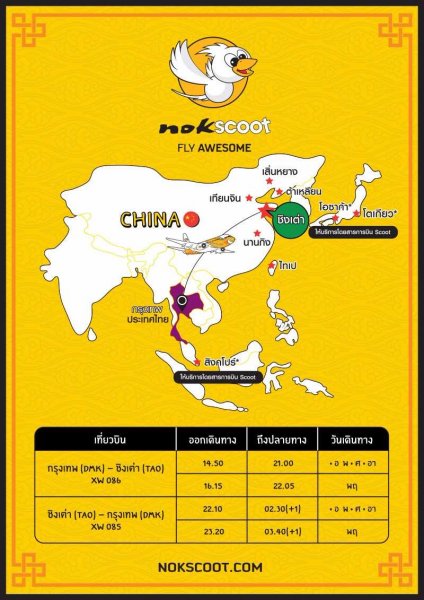 โดยไฟล์ทบินตรงจากกรุงเทพ ฯ ไปชิงเต่าจะมีมากถึง 5 ไฟล์ทต่อสัปดาห์ ใครที่อยากไปสัมผัสชิงเต่าด้วยตาตัวเองก็ไม่ต้องรอแล้ว พุ่งตัวไปจองตั๋วได้เลยที่ www.nokscoot.com/th/ แอบแนะนำให้จองตั๋วพรีเมียมของ Nokscoot Biz ไปเลย เพิ่มเงินอีกนิดหน่อย แต่แลกมากับความโล่งใจที่ไม่ต้องตบตีกับอาซิ่ม อาแปะทั้งหลาย แถมโปรฯ ตอนนี้ราคาน่ารักน่าโดนมาก บอกได้คำเดียวว่าให้รีบพุ่งตัวไปจอง !