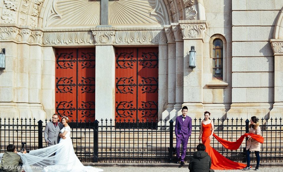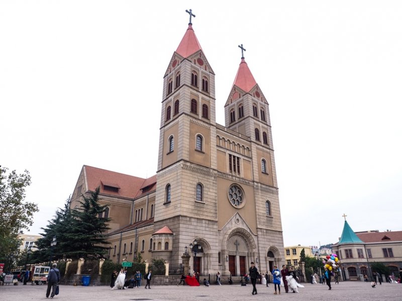 ความท้าทายอย่างนึงเมื่อมาถึงโบสถ์คาทอลิกหน้าตาคลาสสิกใจกลางย่านดาวน์ทาวน์ของชิงเต่าอย่างโบสถ์ St. Michael คือการถ่ายรูปยังไงไม่ให้ติดคู่รักพรีเวดดิ้งจากทั่วสารทิศบนแผ่นดินจีนที่ต่างก็พากันมาถ่ายรูปรอบ ๆ โบสถ์แห่งนี้อย่างไม่ได้นัดหมาย ไม่ว่าจะเป็นลานหน้าโบสถ์ ถนนด้านข้าง หรือแม้แต่ใต้ต้นไม้หลังโบสถ์ก็ยังแทบไม่มีที่ว่างสำหรับเรา เชื่อว่านี่น่าจะเป็นแลนด์มาร์กที่มีคนมาถ่ายพรีเวดดิ้งเยอะมากที่สุดแห่งนึงบนโลก จุด ๆ นี้ใครไม่มีแฟนสามารถเนียนถ่ายคู่กับอาม่าอากงแถวนั้นไปก่อนได้เลย เหล่าม่า ๆ พร้อมจะเข้ามาร่วมแจมในรูปกับเราเสมอ (ฮือ)