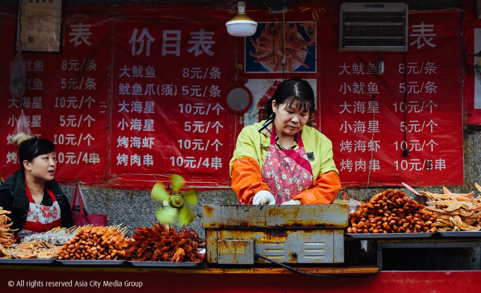 หนึ่งในความครีเอททีฟของคนจีนคือการจับทุกสรรพสิ่งในท้องทะเลที่สามารถกินได้มาทำเป็นอาหาร เพราะฉะนั้นเราจะไม่ได้เจอแค่กุ้ง หอย ปู ปลา แต่ตามถนนข้างทาง และตามตรอกซอกซอยจะมีทั้ง พุดดิ้งหอยเม่นนึ่ง ปลิงทะเลเผา ไปจนถึงปลาดาวย่างเลยทีเดียว ใครอยากสัมผัสอาหารแบบโลคัล ให้เดินทะลุจากถนนข้างโบสถ์ St. Michael แล้วพุ่งตัวไปที่ถนน Pi Chai Yuan ได้เลย