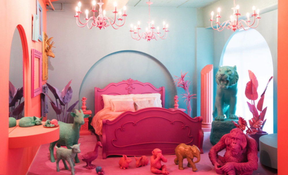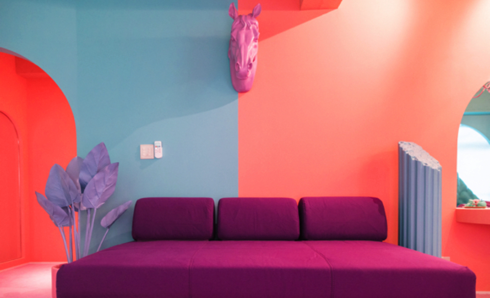 โทนสีที่ Asobi System เลือกใช้สำหรับห้องนี้คือ Hot Pink กับ Baby Blue เป็นหลัก เสริมด้วยโครงสร้างโค้งมนของผนังและเคาน์เตอร์ จนได้ออกมาเหมือนกับโลกในนิทานยังไงยังงั้น ซึ่งแค่เดินผ่านโซนประตูห้องเข้ามาก็เจอไปหลายสีแล้วนะ พอมาเจอไอเทมของประดับตกแต่งห้อง ยิ่งสีสันฉูดฉาดเข้าไปอีก เป็นการเติมพลังความสดใสให้ชีวิตได้แบบไม่ต้องรอเลยแหละ แค่เห็นอินทีเรียร์ก็สนุกแล้ว