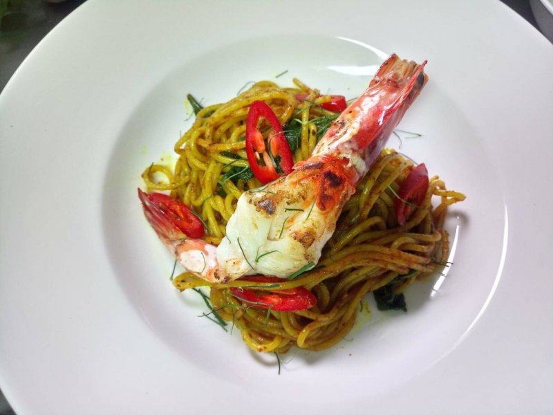 เมนูเด็ด ๆ อย่างพะแนงแกะย่าง (810 บาท) ที่นำซี่โครงแกะออสเตรเลียมาย่างแบบสุกปานกลาง ราดด้วยน้ำพะแนงกะทิหอมเครื่องแกง เสิร์ฟพร้อมข้าวหอมมะลิจากเชียงราย ไข่เป็ดต้มยางมะตูม และยำผักชี ก็อร่อยและรสชาตินัวมาก ๆ หรือจะเป็นปอเปี๊ยะไส้หมูตุ๋น (220 บาท) ที่นำเอาขาหมูตุ๋นจนเปื่อยมาทำเป็นไส้ ใส่ผักดองเข้าไปเพิ่ม ห่อด้วยแป้งปอเปี๊ยะและนำไปทอดจนเหลืองกรอบ แค่นี้ก็อร่อย แปลก และมอบรสสัมผัสที่พิเศษแล้ว นอกจากนี้ยังมียำเป็ดฉีกใส่ลิ้นจี่ ผักชี และผิวส้ม (210 บาท) ต้มยำกุ้งใส่เห็ดแชมปิยอง (350 บาท) สปาเกตตี้กุ้งแชบ๊วยทะเลใส่มันกุ้ง (440 บาท) และของหวานที่มาแล้วไม่สั่งไม่ได้อย่างมะกรูดลอยแก้วน้ำเชื่อมใบเตย (90 บาท) ที่เขาว่าอร่อยสุด ๆ ไปเลยล่ะ