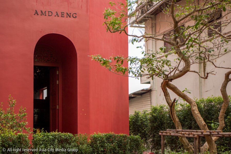 เดินเข้าไปสุดถนน แล้วเลี้ยวซ้ายเข้าซอยเล็ก ๆ อีกนิดเดียว ก็จะพบกับอาคารขนาดไม่เล็กไม่ใหญ่ ที่ทาด้วยสีแดงชาดทั้งหลัง แถมยังมีดีไซน์สะดุดตาจนอดไม่ได้ที่จะก้าวเข้าไปดูภายในสักหน่อย ชื่อของโรงแรมแห่งนี้อาจแปลกหูและชวนสงสัยว่ามันแปลว่าอะไรกันนะ แต่เราก็รู้มาว่า อำแดง คือคำที่ใช้เรียกผู้หญิงในอดีตของไทยเรานี่แหละ และที่โรงแรมแห่งนี้มีชื่อนี้ด้วยเพราะที่ดินที่เป็นที่ตั้งของโรงแรมเดิมเป็นของอำแดงคลี่มาก่อน ซึ่งพระบาทสมเด็จพระจุลจอมเกล้าเจ้าอยู่หัว รัชกาลที่ 5 ทรงพระราชทานที่ดินแปลงนี้ให้ สุดท้ายเมื่อที่ดินแปลงนี้ได้กลายเป็นโรงแรมสุดเก๋ริมแม่น้ำเจ้าพระยา ชื่อของ "อำแดง" จึงมาวินและตั้งใจไว้แต่แรกเลยว่าที่นี่ต้องชื่อนี้เพียงชื่อเดียว