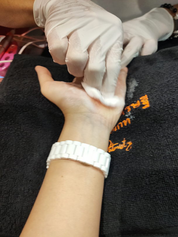 ที่ที่เรานัดสักลายมือวันนี้คือกับ สักลายมือเศรษฐี หมอเกท ร้าน เดวาคชานัม หรือ Deva ตรงชั้น 2 ของ JJ Mall โดยเขาจะมี 'คอร์ส' ให้เลือกตอนที่ผู้รับบริการจะนัดจองวันเวลา เริ่มต้นที่คอร์ส 1 ราคา 1,999 บาท ไปจนถึงคอร์ส 5 ราคา 12,999 บาท ซึ่งแต่ละคนจะได้พูดคุยกับ หมอเกท น.พ.พิสิษฐ์ การูปายา ก่อนจะได้ไปนั่งสักในสเตชันที่ทางร้านเตรียมไว้ ซึ่งถือว่าเขาจัดสเปซได้ดีเลยล่ะ