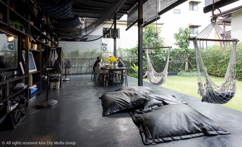 ยิ่งไปกว่านั้นยังมีสนามหญ้าเล็ก ๆ ที่เปิดให้ใช้ได้ตามสะดวก อย่างการทำบาร์บีคิวที่ทางโฮสเทลมีเตาและถ่านให้ ส่วนอุปกรณ์อื่น ๆ ก็เดินไปซื้อในตลาดใกล้ ๆ ได้ไม่ยากเลย ที่เซอร์ไพรส์เราคือทางโฮสเทลมีเสื่อโยคะไว้ให้ยืมเล่นตรงนี้ด้วย ชิลล์ไปไหน ! นอกจากนี้ถ้าใครสนใจก็สามารถเช่าพื้นที่จัดเวิร์กชอปได้ด้วยนะ