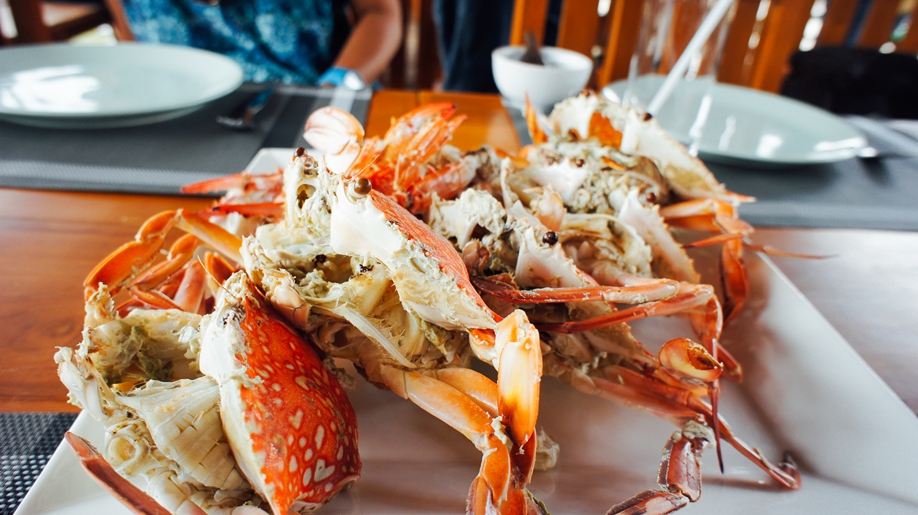 ที่แรกที่เราแวะเมื่อถึงเกาะกลาง คือ ร้านอาหารชื่อดังอย่าง “บ้านมะหญิง” ซึ่งเป็นร้านอาหารทะเลที่อร่อยมากสมชื่อจริงๆ โดยปกติเราก็มีโอกาสได้ทานอาหารใต้อยู่เรื่อยๆ แต่อาหารที่ชุมชนเกาะกลางเด็ดจริงอะไรจริง! ทุกเมนูกุ้ง หอย ปู ปลา ทั้งสด ทั้งปรุงรสชาติอาหารมาได้รสเผ็ดเข้มข้นกำลังดี ไม่ว่าจะเป็นแกงส้มปลากระพงแดง แกงกะทิใบชะพลูกุ้ง (ใช้กะทิสดแท้ๆ ด้วย เชื่อเราว่ามันอร่อยกว่าที่ทานกันทั่วไปหลายเท่า) และปลาสามรสเนื้อแน่นๆ เอาเป็นว่ากลุ่มพวกเราทานกันจนท้องแตกไปตามๆ กัน