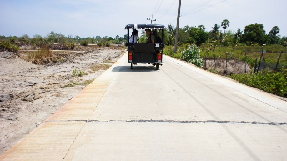 หลังจากนั้นเราเดินทางทัวร์เกาะต่อด้วยรถสามล้อพ่วง ซึ่งได้พี่ๆ ที่อาศัยอยู่ในชุมชนเนี่ยแหละมาเล่าให้พวกเราฟังว่าความเป็นอยู่ของคนที่อาศัยยู่บนเกาะกลางเป็นอย่างไรบ้าง เลยทำให้เรารู้ว่ากว่า 80% ของคนบนเกาะเป็นชาวมุสลิม โดยที่บรรพบุรุษต้นตระกูลของชุมชนที่นี่ได้อพยพมาจากมาลาเซีย บางส่วนของเกาะได้เปิดบริการเป็นโฮมสเตย์ บ้างทำเกษตรกรรมปลูกข้าวสังข์หยด ซึ่งช่วงเก็บเกี่ยวจะอยู่ในเดือนมกราคมของทุกปี น่าเสียดายที่ตอนเราได้แวะไปเป็นหน้าแล้งพอดี แต่ระหว่างทางเราได้ชมทิวทัศน์สองข้างทาง ได้เห็นลักษณะของบ้านยกสูงมีใต้ถุนที่แตกแต่งกันไป และผู้คนขับรถมอเตอร์ไซด์ผ่านไปมา เติมน้ำมันที่สถานีจิ๋วๆ ข้างทาง มันก็เพลินมากเลยนะ รู้สึกเงียบสงบห่างไกลจากความวุ่นวายอย่างแท้จริง