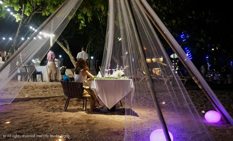 หรือถ้าไม่อยากไปไหนไกล ก็แค่เปลี่ยนบรรยากาศในห้องนอนมาเป็นดินเนอร์ริมทะเลดูไหมล่ะ ทางโรงแรมเซนทารา อ่าวนาง บีช รีสอร์ต แอนด์ สปา เขาก็มีบริการดินเนอร์บุฟเฟ่ต์ริมหาดเช่นกัน กับไลน์อาหารนานาชาติ ที่มีทั้งอาหารไทย ยำแซ่บ ๆ ผัดไทยสูตรดั้งเดิม บาร์บีคิวซีฟู้ดแบบจัดเต็ม ทั้งปลา หอย ปลาหมึก กุ้ง หมู เนื้อ ไก่ รวมถึงของหวาน ไอศกรีม และเครื่องดื่มแอลกอฮอล์ที่มาแบบจัดเต็ม ในบรรยากาศผ่อนคลาย โต๊ะแบบลองเทเบิ้ล ให้เราได้นั่งสานสัมพันธ์กับเพื่อน ๆ บนโต๊ะได้อย่างสนุกสนาน ตกดึกยังมีโชว์ควงไฟให้เราได้ดูด้วย อ้อ อยากให้ลองถอดรองเท้า แล้วเดินลงไปบนหาดทรายดู ขอบอกว่าหาดทรายที่อ่าวนางนี้พิเศษกว่าที่อื่น เพราะทั้งหาดจะเต็มไปด้วยเปลือกหอยชิ้นเล็กชิ้นน้อยที่รวมเข้ากับทรายเม็ดละเอียด เป็นสัมผัสที่เราชอบจริง ๆ เดินย่ำทั้งคืนก็ยังได้