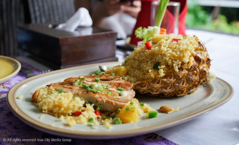 พอพูดถึงอาหารใต้ เราขอปักหมุดไว้กับ 2 ร้านนี้ ที่ต้องบอกว่าเป็นร้านฮอตฮิตของกระบี่เลยแหละ เราแวะร้านแรกที่ The Tree House Cafe หรือร้านบ้านต้นไม้ ที่ต้อนรับเราด้วยความร่มรื่นของต้นไม้นานาพันธุ์ ที่เกมือนยกร้านมาไว้กลางป่ากันเลย ตัวอาหารเองนั้นก็ต้องเรียกว่ารสจัดถึงใจ และอาหารก็หลากหลาย ไม่ได้มีแค่อาหารใต้เพียงอย่างเดียว มาถึงที่นี่เราอยากให้ลองขนมจีนน้ำยาปู ที่เรียกว่าให้ขนมจีนมาน้อยไปไหม เพราะปูในน้ำยานั้นเยอะเวอร์! ส่วนรสชาติก็ร้อนแรงตามสไตล์น้ำยาใต้ อีกจานเป็นข้าวผัดสับปะรด ที่แม้ไม่ใช่มิกกี้เมาส์ และมินนี่เมาส์มาขายในตลาดน้ำให้เรากิน แต่รสชาติของที่นี่ก็อร่อยไม่แพ้กัน