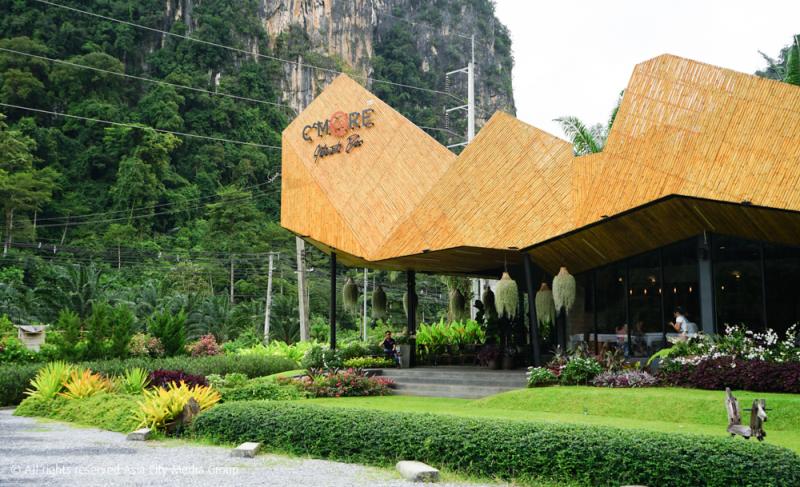 ปิดท้ายด้วยคาเฟ่สวย ๆ ที่ถ้ามากระบี่ต้องแวะอย่าง C'More Mount Bar คาเฟ่ท่ามกลางหุบเขา นอกจากโลเคชั่นที่มีถูเขาสูงล้อมรอบ และตั้งอยู่ติดกับสวนปาล์มแล้ว เรายังชอบการออกแบบร้านที่หยิบเอาไม้ไผ่มาสานกันเป็นรูปทรงล้อไปกับภูเขารอบ ๆ อีกด้วย ที่นี่มีทั้งอาหาร เครื่องดื่ม และของหวาน จะสั่งกาแฟ ช็อคโกแลต ชาเย็น ไปจนถึงช็อกโกแลตลาวา หรือฮันนี่โทสต์ ก็มีพร้อม แต่บอกก่อนนะว่าร้านนี้ฮิตหน่อย ที่นั่งเขาไม่ได้มีเยอะมาก ยังไงก็แบ่ง ๆ กันนั่งแล้วกันเนอะ