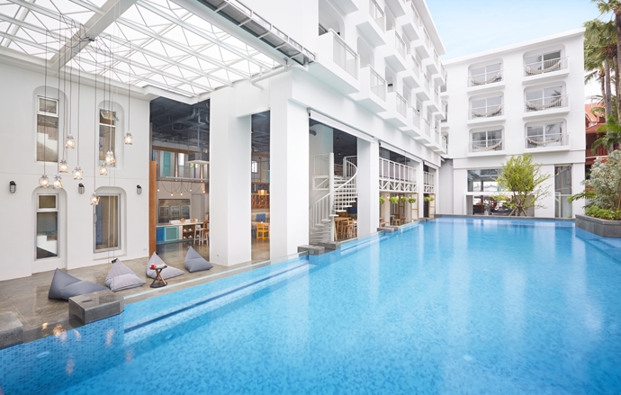 เห็นเป็นโฮสเทลแบบนี้แต่ที่นี่ยังจัดหนักให้แขกมาพักด้วยการสร้างสระว่ายน้ำสีน้ำเงินแบบซีทรูไว้ให้ว่ายน้ำเล่นสบายอารมณ์ได้เลย ส่วนเรื่องความสนุกใกล้เคียง โฮสเทลห่างจากหาดเพียง 5 นาที พอๆ กับเดินไปซอยบางลา แหล่งปาร์ตี้ยามค่ำคืนชั้นนำที่เต็มไปด้วยคลับชื่อดังมากมา เราแนะให้ลองไปเที่ยวคลับดังอย่าง Seduction หรือ White Room ที่ดีเจเปิดแผ่นกันมันทุกคืน