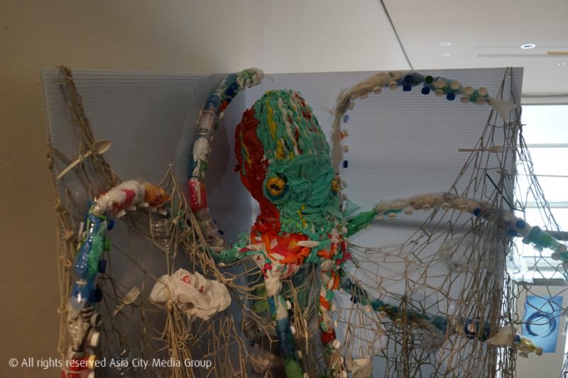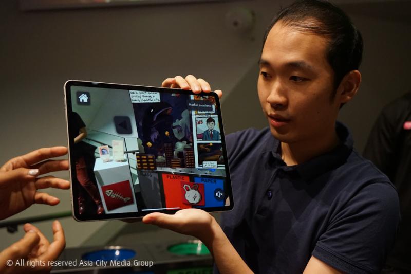 อีกหนึ่งงานที่หยิบเอาเรื่องของขยะในทะเลและมหาสมุทรมาเล่น แถมยังมีงานมาให้เราได้ลองเสียด้วย นี่คือผลงานจากกลุ่ม Warrior 9 VR เริ่มจากงาน Installation ที่ทำมาจากขยะพลาสติกต่าง ๆ เป็นรูปปลาหมึกยักษ์ และคลื่นทะเลกันก่อนเลย จากนั้นก็เข้าสู่งาน VR ที่จะให้เราใส่แว่น แล้วดำดิ่งลงไปใต้มหาสมุทรที่สวยงาม แต่เมื่อเราดำน้ำไปเรื่อย ๆ จะพบว่าเริ่มมีขยะลอยไปมาอยู่ในน้ำ และขยะก็เริ่มเยอะขึ้นทุกที ๆ ส่วนงานอีกชิ้นหนึ่งก็เก๋เลย เพราะทางศิลปินได้ผลิตแอปพลิเคชั่น Ocean Life (มีให้โหลดใน App Store แล้วจ้า) ที่ให้เรารู้สึกเหมือนกำลังเปิดประตูเข้าไปในโลกใต้น้ำ แล้วพบเจอกับชีวิตใต้น้ำที่ต้องเจอกับปัญหามลพิษของพลาสติกในทะเลด้วย ใครไม่ได้มาก็โหลดไปเล่นกันที่บ้านได้ฟรีเลยนะ ทีมนี้ก็ใช้อุปกรณ์สร้างสรรค์ผลงานด้วย MacBook Pro, iPad Pro, Unreal Engine และ ARKit นั่นเอง