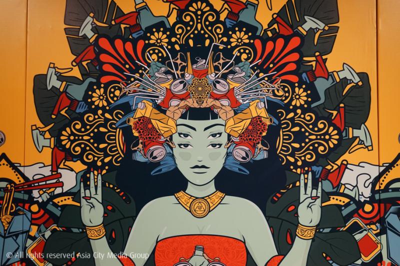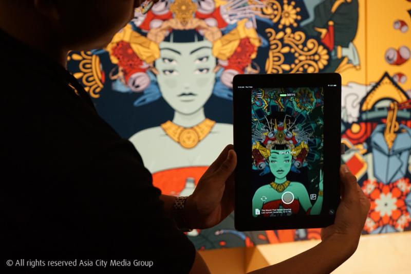 งานนี้ตั้งอยู่ข้าง ๆ A Better Tomorrow เลย แถมภาพที่ตั้งโชว์อยู่ก็สวยหลอกล่อตามาก ๆ เพราะตรงหน้าเรานั้นคือผลงานขนาดพาโนรามารูปหญิงสาวที่เหมือนเทวีสักองค์ มาพร้อมกับองค์ประกอบที่ดูคุ้นตา แต่สิ่งของที่นำมาประกอบในภาพนั้นดูดี ๆ แล้วคือขยะล้วน ๆ ทั้งหลอด กระป๋องน้ำ กล่องนม ถุงพลาสติก และขยะอื่น ๆ อีกสารพัด แอบคุยกับศิลปินผู้สร้างผลงานอย่างกลุ่ม DPLMT ว่าไอเดียมาจากไหน พวกเขาบอกว่าเกิดจากที่เห็นปัญหาเรื่องขยะในโลกของเรา ที่นับวันกองภูเขาขยะจะสูงขึ้น ๆ ทุกที ส่วนผู้หญิงในภาพนั้นก็เป็นตัวแทนของสิ่งที่ชาวมาเลเซีย (ศิลปินเป็นชาวมาเลเซีย) นับถือบูชา ความเจ๋งคือหากเราแสกน QR Code ที่อยู่ด้านข้าง แล้วเอาสมาร์ตโฟนมาจับที่ภาพ ขยะทั้งหมดจะเคลื่อนไหวแบบคาไลโดสโคปหมุนติ้ว ๆ เหมือนกำลังใช้ขยะสะกดจิตเราอยู่ และเมื่อเปลี่ยนเป็นกล้องหน้าแล้วเซลฟี่ ภาพของเราก็จะมีเจ้าขยะหมุนไปมารอบ ๆ เป็นวงชฎาเหนือศีรษะด้วยแหละ ขอบอกว่าศิลปินเขาใช้เพียง MacBook Pro, iPad Pro กับโปรแกรม Procreate, Amaziograph และ Spark AR Studio ในการสร้างสรรค์งานชิ้นนี้เท่านั้นเองนะ
