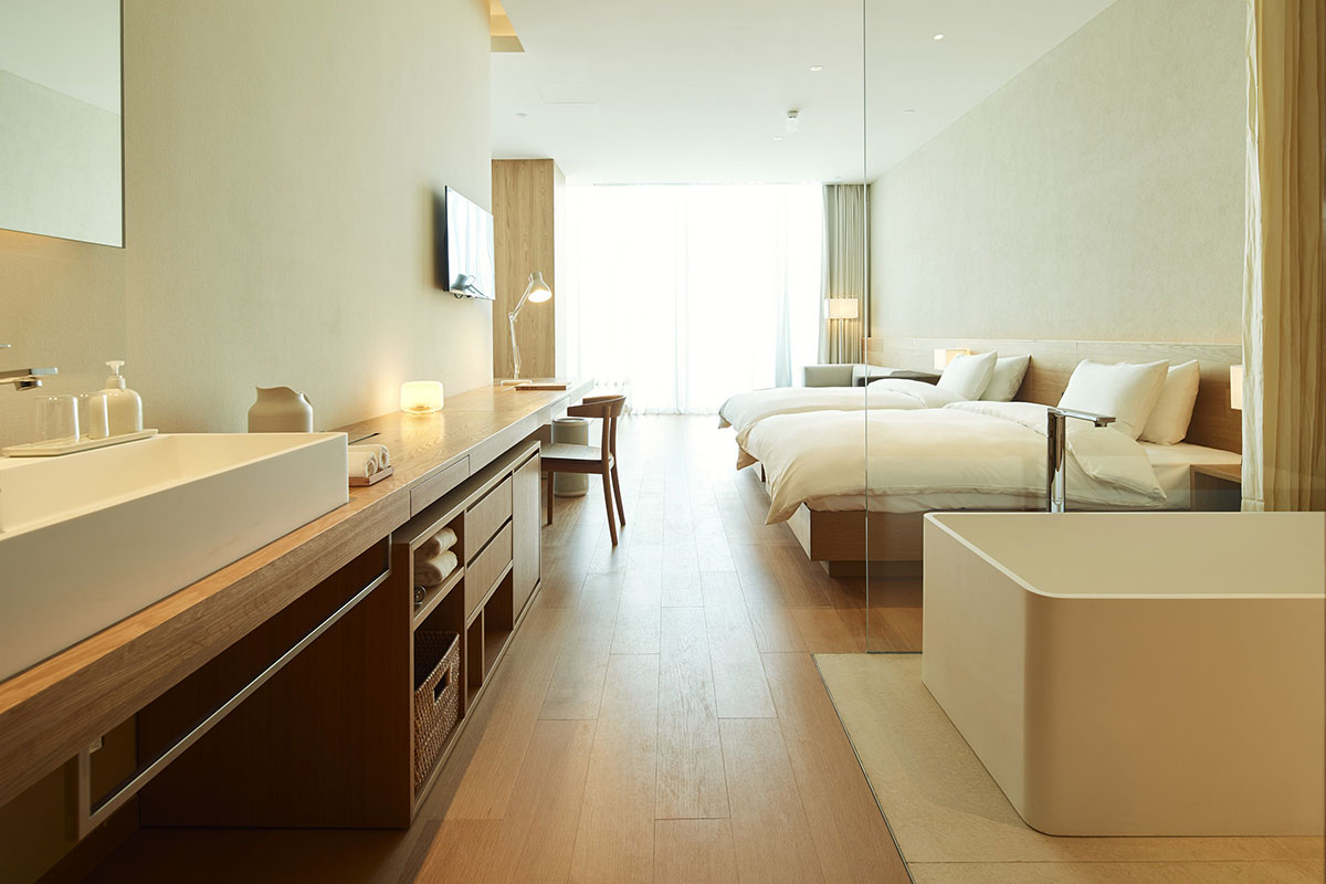 ส่วนห้องหับก็สวยงามตามท้องเรื่องของชาว MUJI ด้วยโทนสีไม้ ข้าวของเครื่องใช้ทั้งหมดคือ MUJI ยกเซ็ต มาพร้อมห้อง 6 ขนาดตั้งแต่ 22 ตร.ม. ไปจนถึง 75 ตร.ม. เลย แม้เราจะไม่มีโอกาสเข้าไปดูเอง แต่เชื่อว่าถ้าได้พักสักคืนจะต้องฟินแน่ ขอจดไว้เป็น Wishing List ของตัวเองไว้เลย