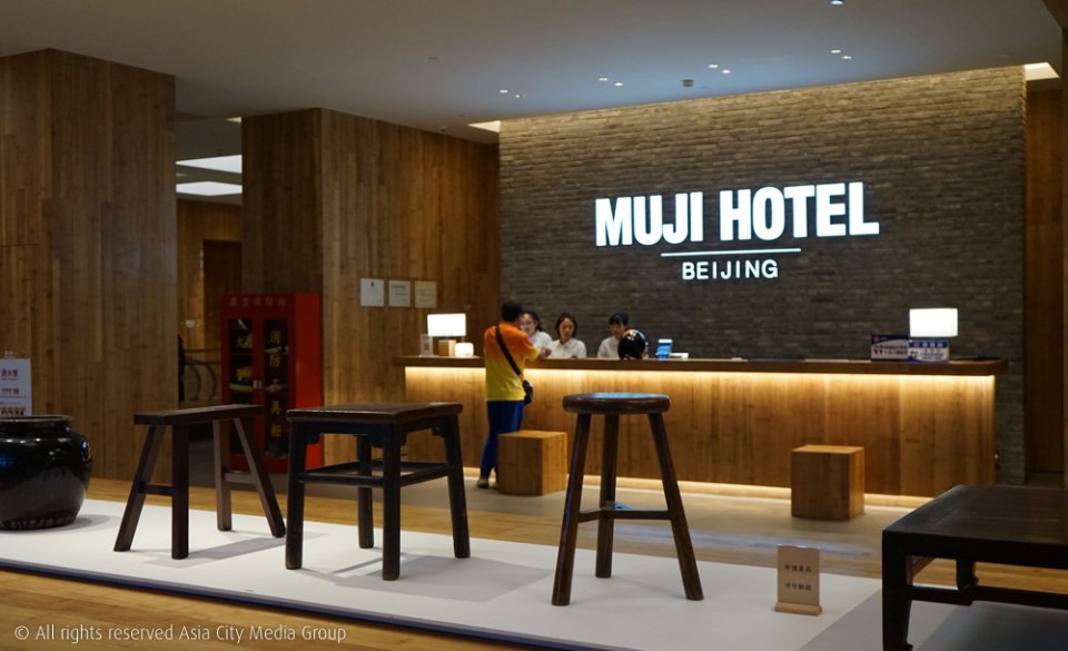 เราชอบที่การตกแต่งของตัวอาคารดูกลมกลืนไปกับอาคารอื่น ๆ ของปักกิ่งในละแวกนั้นไปด้วย ไม่ใช่มาเป็นไม้สีอ่อนที่คุ้นเคยแบบมูจิจนแตกต่างกับชาวบ้านเขา แต่เมื่อเดินเข้ามาข้างใน ก็พบว่านี่แหละคือมูจิจริง ๆ เพราะลักษณะการตกแต่ง การเลือกใช้วัสดุอุปกรณ์ และการจัดวางเลย์เอาท์ต่าง ๆ นั้น คล้ายกับเวลาเราเดินเข้าร้านมูจิเลย เพียงแค่ที่นี่เป็นโรงแรม ไม่ใช่ร้านขายสินค้าแบรนด์นี้เท่านั้นเอง