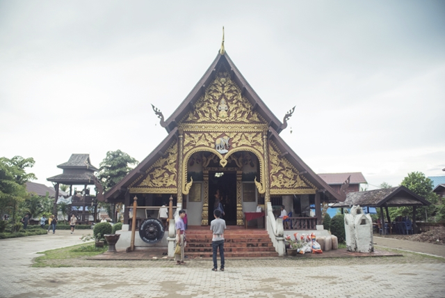 มาเที่ยวหมู่บ้านแล้วก็ต้องไปสักการะแหล่งรวมศรัทธาของชาวบ้านด้วย เราขอแนะนำให้เพื่อนๆ ไปแวะ วัดร้องแง วัดขนาดเล็กแต่มีความโดดเด่นด้านสถาปัตยกรรมที่สร้างตามศิลปะแบบไทลื้อที่ได้รับรางวัลอนุรักษ์ศิลปะ และสถาปัตยกรรมดีเด่นจากสมาคมสถาปนิกสยามในพระบรมราชูปถัมภ์ โดยลวดลายที่โดดเด่นอยู่ตรงหน้าบันของวิหารที่เป็นลายพันธ์พฤกษางดงาม เสาแดงลวดลายสีทอง รวมทั้งธรรมาสน์โบราณ